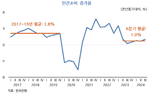 Since the second quarter of 2023, private consumption has maintained a low growth rate of around 1%, identified as a primary factor driving sluggish domestic demand. The average private consumption growth rate from 2017 to 2019 was 2.8%, but recent analysis shows that the average for the past six quarters has been a mere 1.0%.